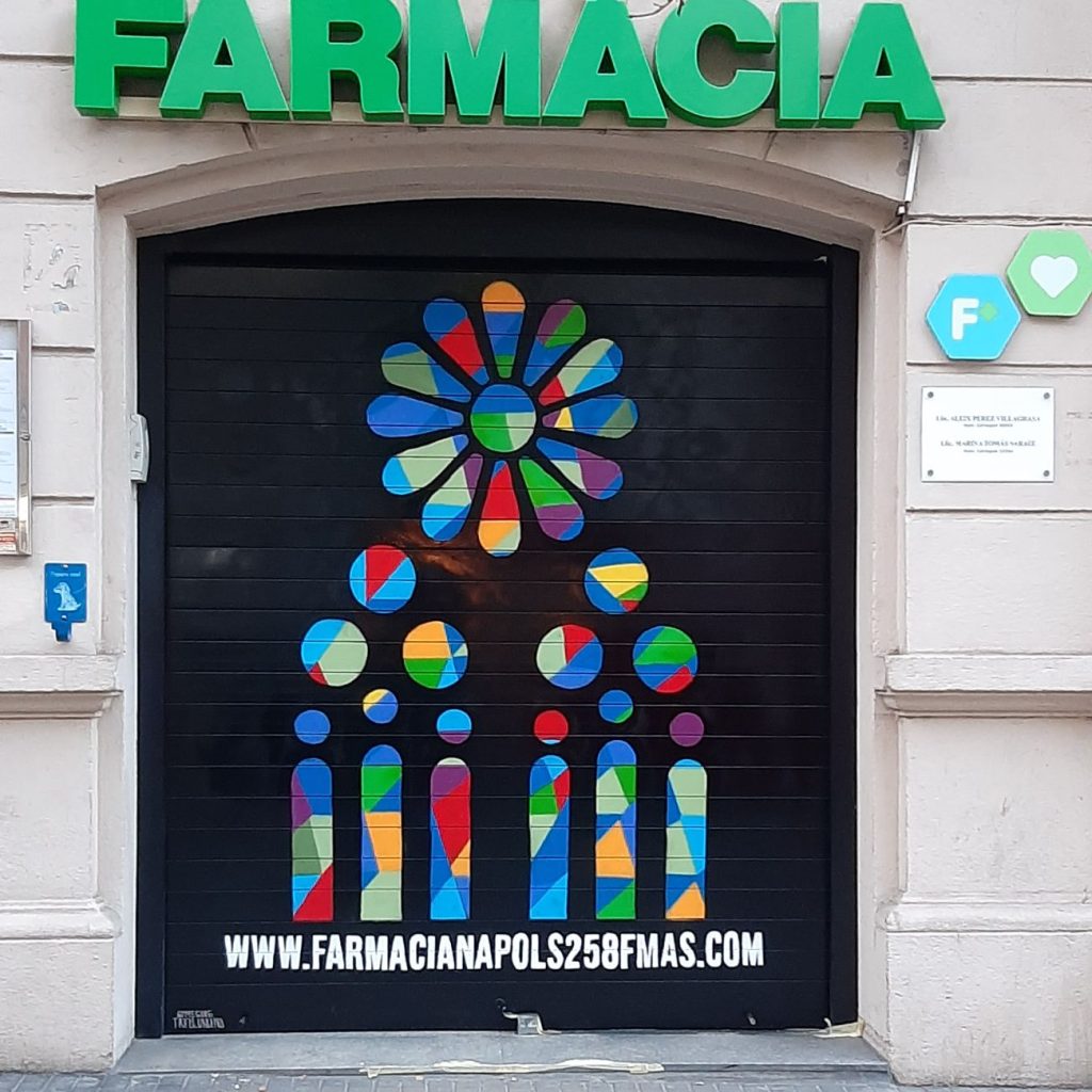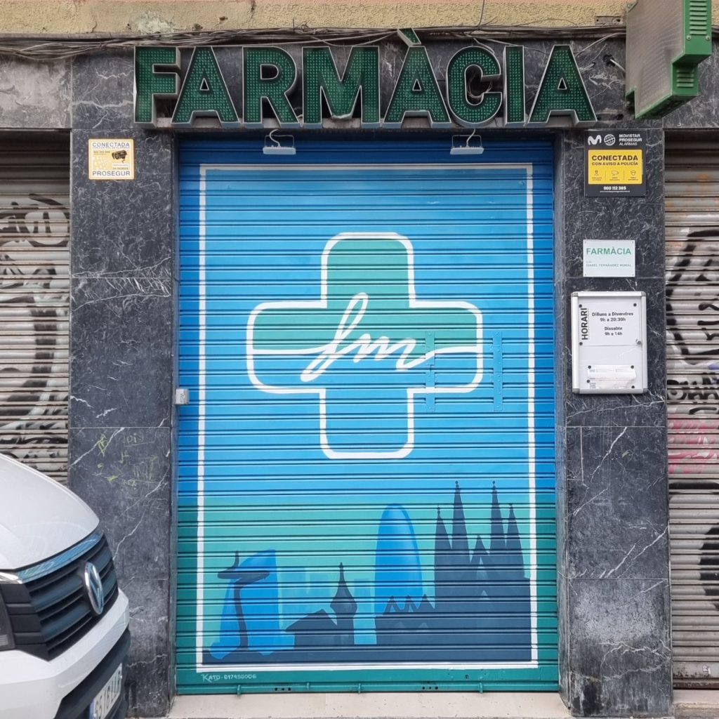 Diseño graffitis especialmente pensados para farmacias, combinando profesionalismo y arte urbano. Trabajo con paletas de colores que transmiten salud y confianza (azules, verdes, blancos), integrando elementos como cruces médicas o moléculas de forma creativa. Las pinturas son resistentes a la intemperie y se adaptan al estilo arquitectónico del local, ayudando a tu farmacia a destacar en el barrio con un toque moderno. Perfecto para renovar persianas o fachadas con un enfoque fresco pero serio. ¿Listo para transformar la fachada de tu farmacia?