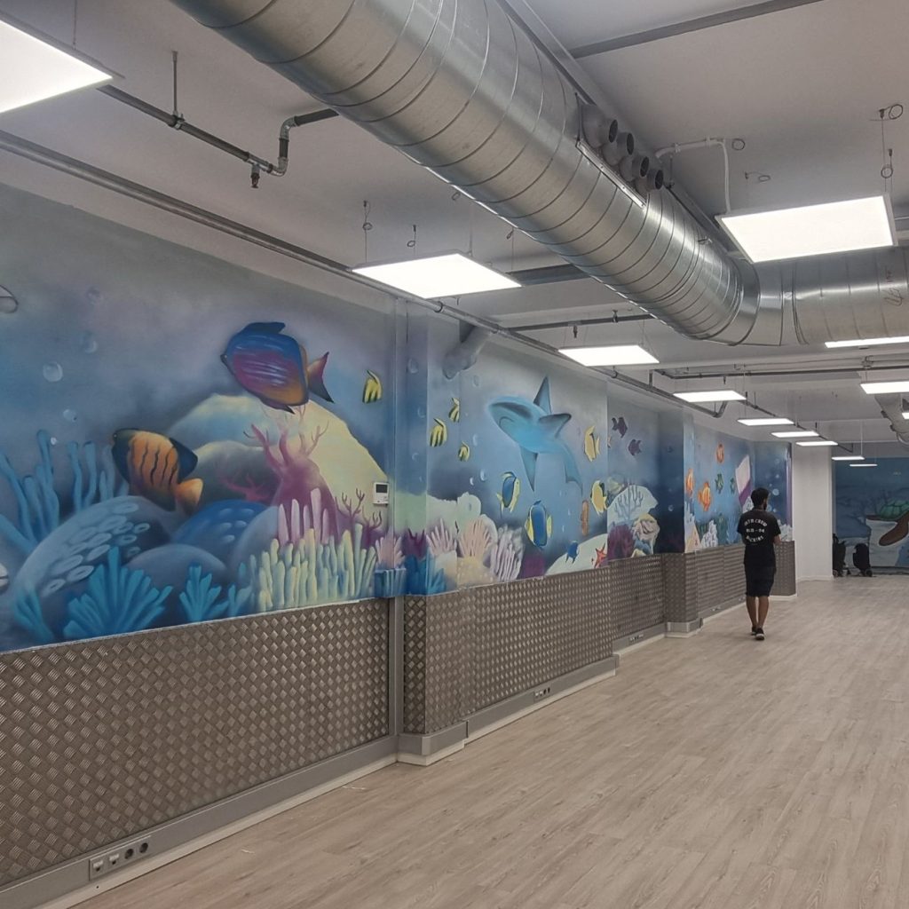 Obras a gran escala que transforman fachadas, medianeras o espacios públicos. Con planificación técnica y experiencia en superficies grandes, pinto murales que se convierten en referencias visuales del barrio o ciudad. Arte pensado para ser visto desde lejos y disfrutado de cerca.